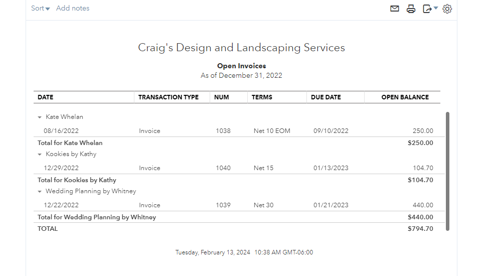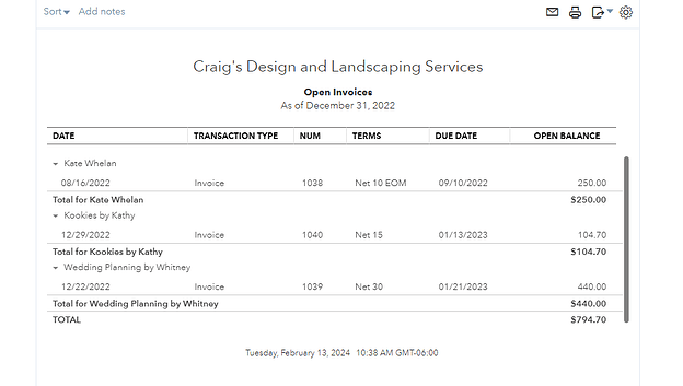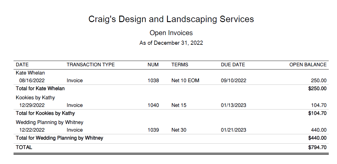 You have been newly hired as an accounting employee at Craig’s Landscaping. Craig has given you some instructions for your day to help him out with Quickbooks. He has given you a list of invoices to complete and has asked you to run a couple of reports to send him. You know that the last accountant was not careful when recording items in Quickbooks and clients often came to Craig complaining about incorrect and untimely invoices. You want to make sure that you do this as quickly and as correct as possible. Craig wants to check your work using the two reports by the end of day today.