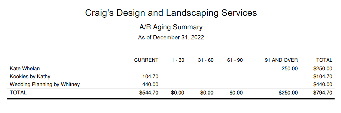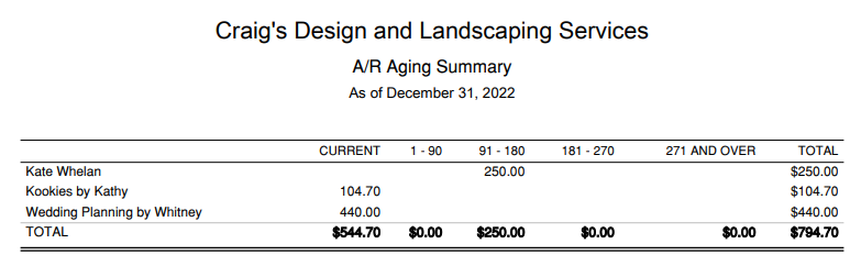 - Run an accounts receivable aging summary report as of 12/31/2022.