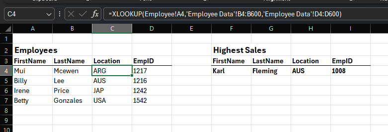 - Go to the sheet titled “Employees” and find all employees in Employee data using the data given