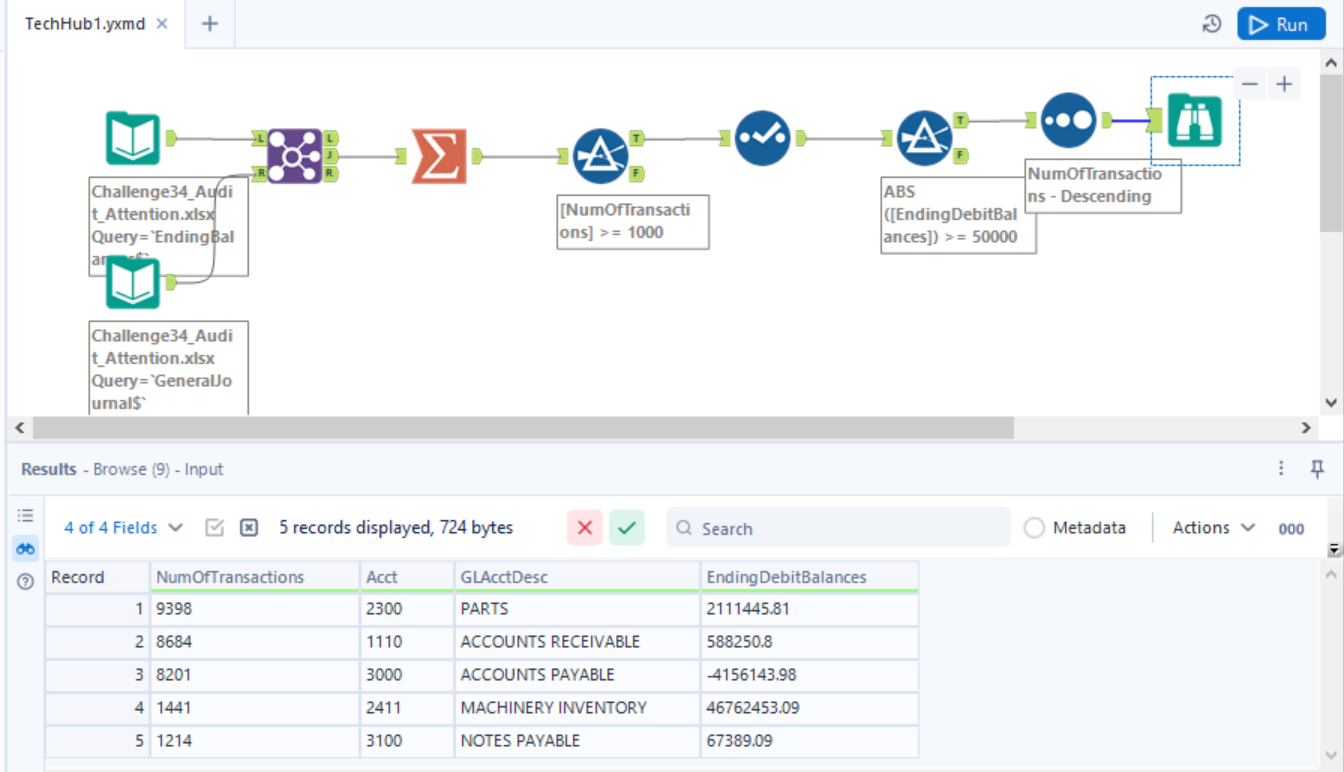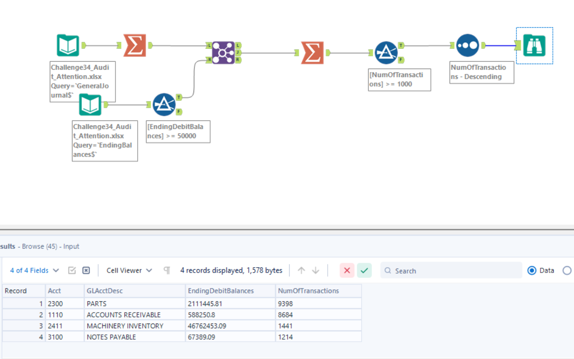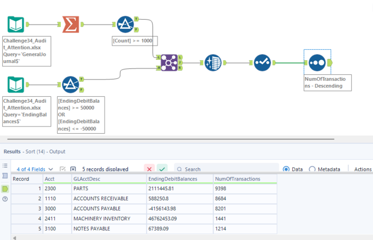 I had a hard time with the data, because it’s so large…so I gave up on the sorting because I didn’t want to wait ten minutes every time I ran the flow. Cool challenge though!