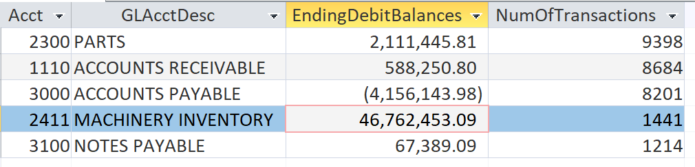 WHERE (((Abs([e].[EndingDebitBalances]))>=50000) AND ((e.Acct) Is Not Null))