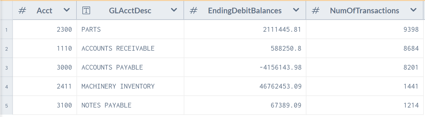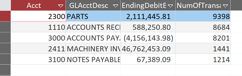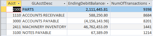 GROUP BY e.Acct, e.EndingDebitBalances, e.GLAcctDesc