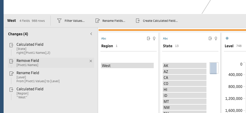 - For each of the unemployment level datasets, add a column containing the region the state resides in (found in the original file name). Then concatenate each of the unemployment level datasets, so you have one dataset containing every region’s data.
