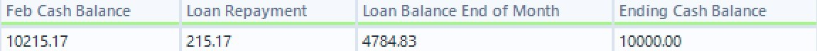 Find the total cash available before making any repayments, and then find the amount of the loan repayment (if any) and the ending cash and loan balances for the month of February.