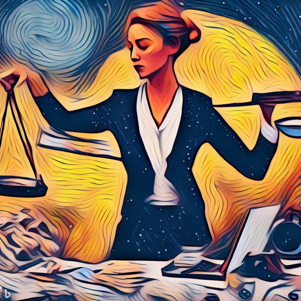 Prompt for AI: " A female accountant balancing debits and credits in the style of Van Gogh."