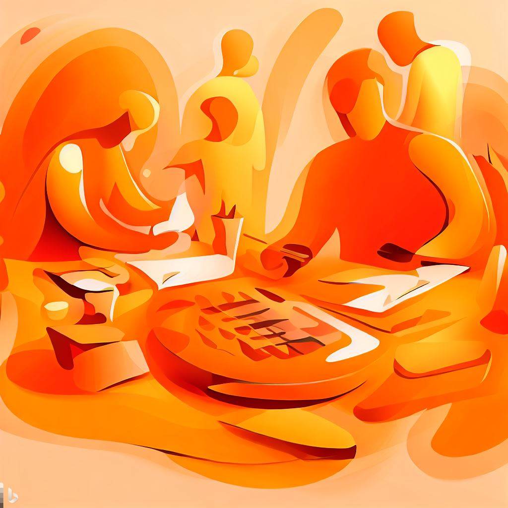 A) This is the story of people doing the job of accounting but in fun orange shades.