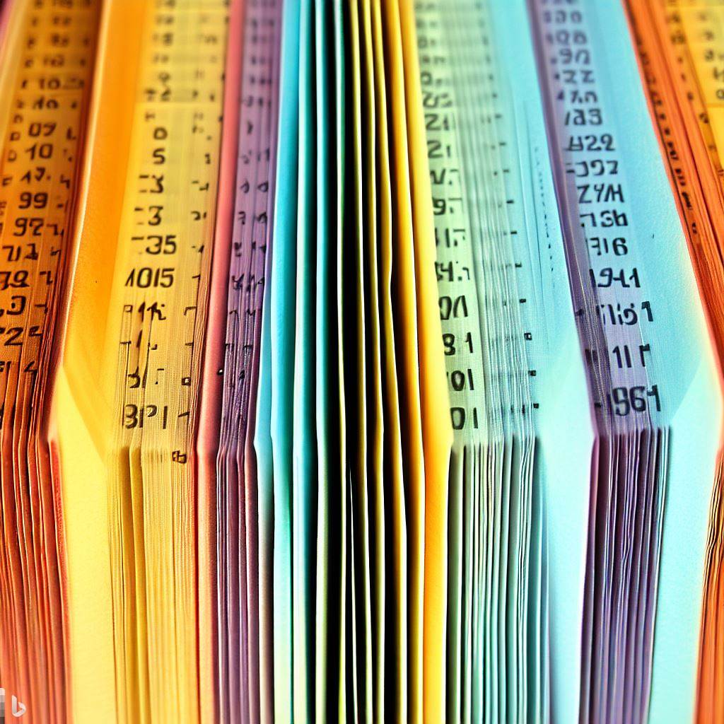 c.) I typed “colorful book pages with columns very organized with numbers resembling a ledger” into microsoft bing image creator.